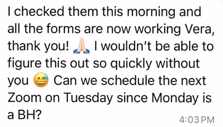 That’s totally fair and honestly, I’d be more worried if you weren’t asking. With so many voices online (and so much noise), it makes sense to pause and wonder if someone really walks their talk. So don’t just take my word for it, here’s what a few of my clients had to say after partnering with me and trusting me with their operations.